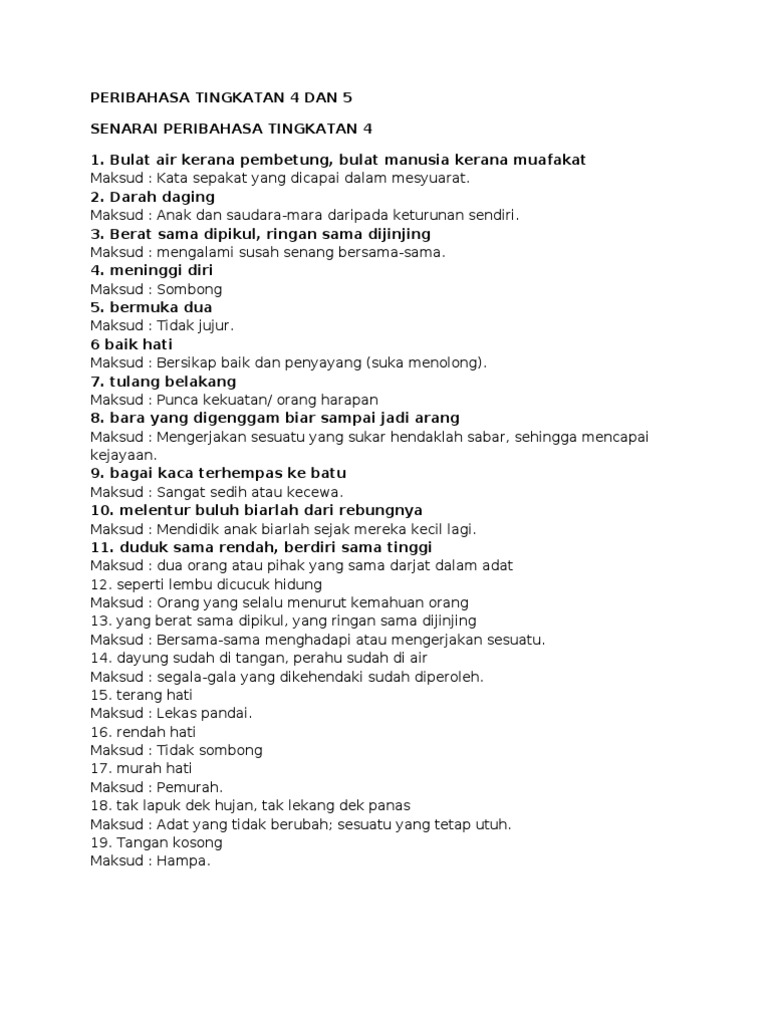 Senarai Peribahasa Dalam Buku Teks Bahasa Melayu Tingkatan 4 Dan 5 Pdf
