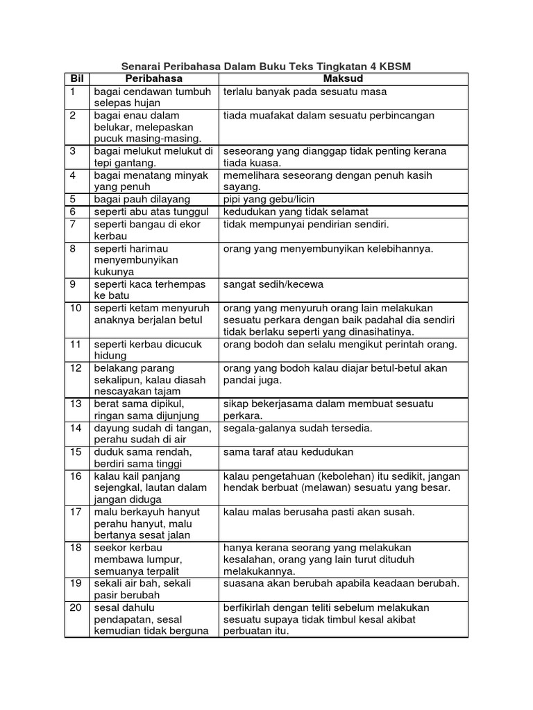 Senarai Peribahasa Dalam Buku Teks Tingkatan 4 Kbsm Pdf